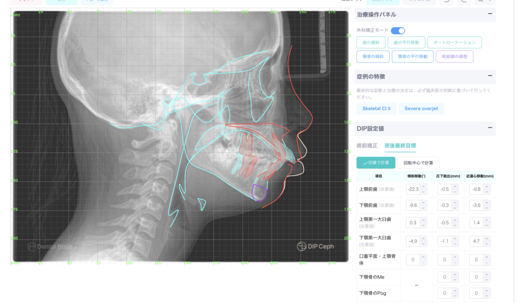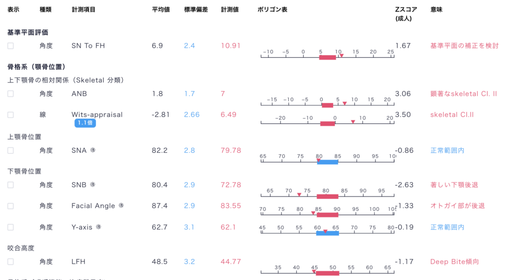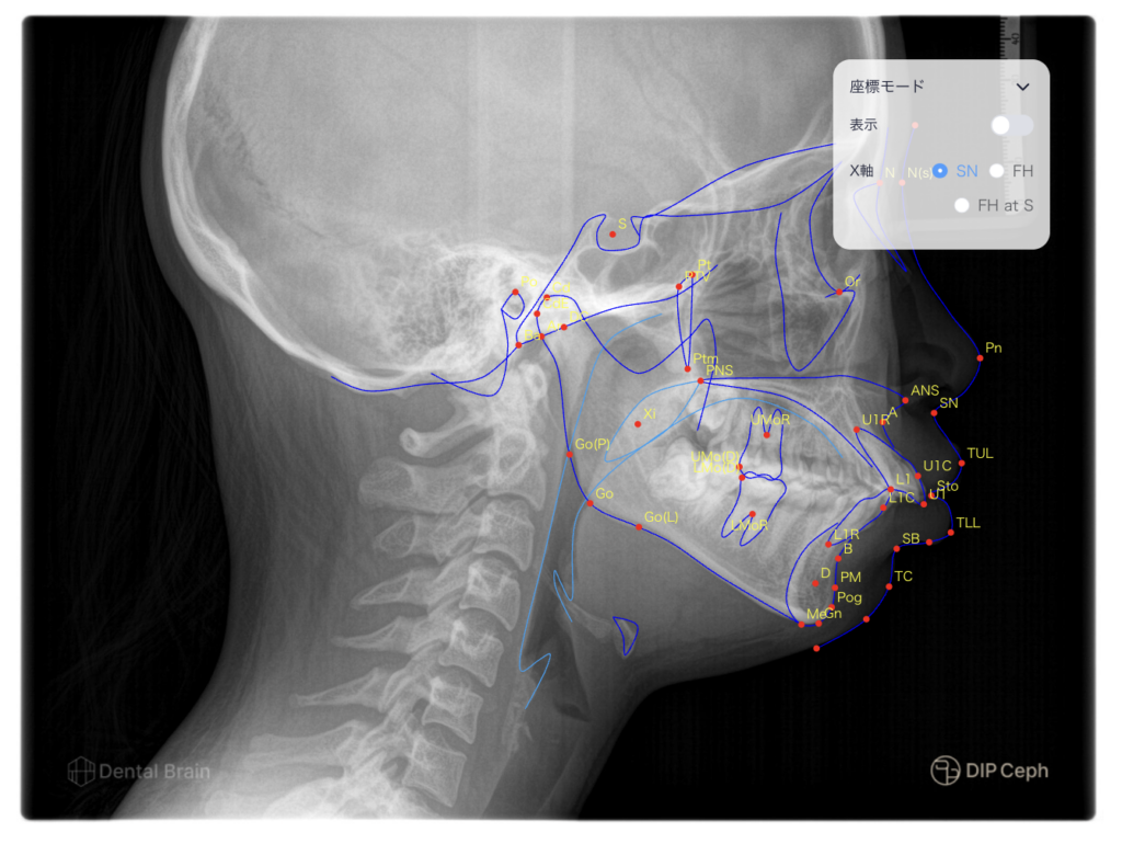 上記のDIP Cephは当院の綿引院長の開発ソフトです。DIP Cephでは、骨格の評価を行うことができます。